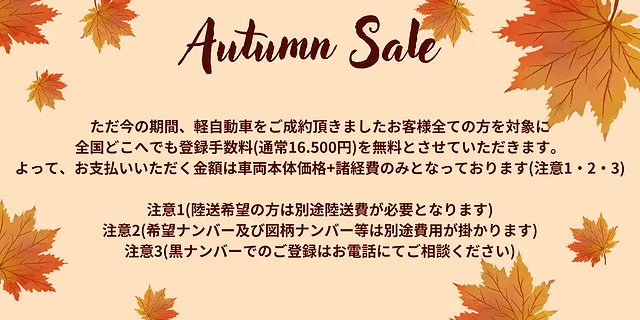 軽自動車をご成約(ご入金)頂きましたお客様全ての方に全国どこでも名義変更・登録手数料